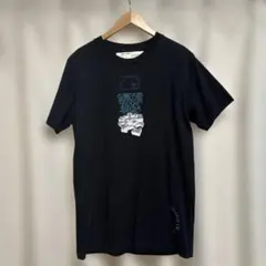 OFF-WHITEのブラックTシャツ、バックに独特なグラフィックデザイン。