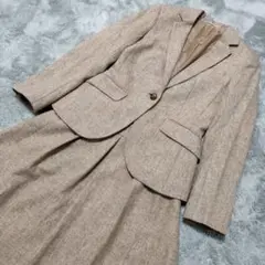 美品 スーツセレクト フレンチスリーブ ノーカラー スカート セットアップ M