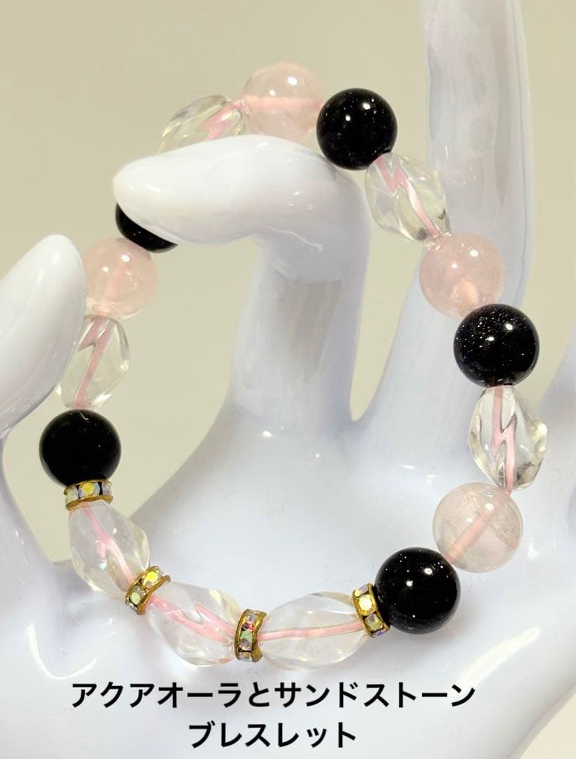 アクアオーラ水晶とサンドストーン、ローズクォーツオーラのビーズを使用したキラキラのブレスレットを作りました。