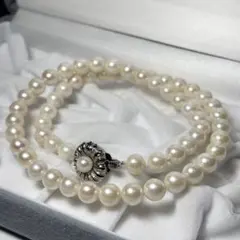 silver925 あこや真珠 ステーションネックレス 本真珠 8mm ロング