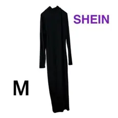 シーイン 長袖ロングフレアワンピース 総柄 花柄 パフスリーブ リボン ギャザー