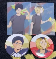ハイキュー黒尾鉄朗・孤爪研磨 縁日缶バッジ セットです。