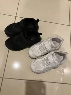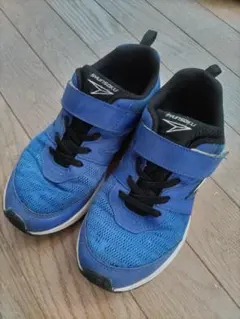 青と赤の配色が特徴的な瞬足のスニーカー。