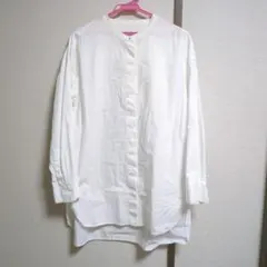 一度着用し、クリーニング済み商品です。バックボタン(金)デザインのベージュ長袖シャツ。