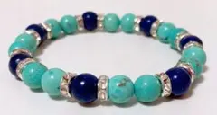 天然石は6ミリのグリーンとダークブルーとブルーターコイズを使用