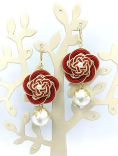 【A-31】水引 フック ピアス 縁結び 魔除け ピンク 金アレ対応 新品