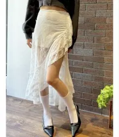 ドロストのデザインによってアシンメトリーの動きのあるデザインが大人っぽい印象のロングスカートです。ドロスト下には大きくスリットが入っており、ヘルシーな肌見せが叶う一枚です。ドロストは自在に調整可能です。