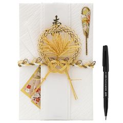 新品未使用ですが、もともと袋・短冊に水引の型が付いている物、又は折れじわが付いている物がございます。