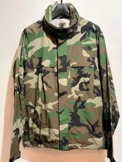 カモフラージュデザインのフード付きマウンテンパーカー、サイズM。