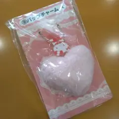 ハート型のファー素材にハローキティのチャームが付いたバッグチャームです。