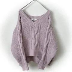 「即日発送」M GRLグレー Vネック ケーブル編み 長袖ニットニット