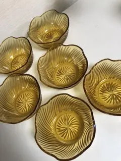 【段々値下】昭和レトロ デザート皿5枚組 アンバーガラス 超美品 ソガガラス