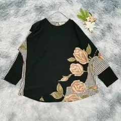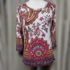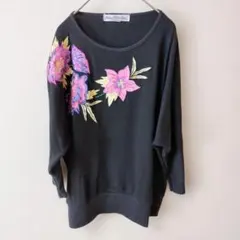 【ff Best Selection】 花柄レース 7分袖プルオーバー L 紫