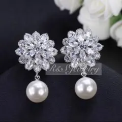 【大粒パール×ビジュー フラワーモチーフピアス】