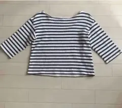 フルグロウ 七分袖 ランダム リブ カットソー Vネック 綿混 マーブル ニット