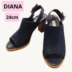 DIANA ダイアナ デニム サンダル 24.5 ヒール オープントゥ ネイビー