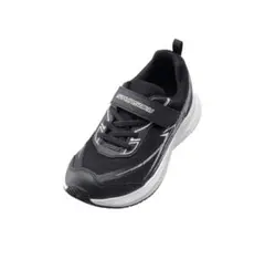 ベルクロストラップ付きのカジュアルな黒と緑のキッズシューズ。
