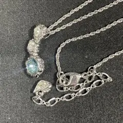 クリスタルペンダントとハート型チャームのネックレス、シルバー色の金属製で調整可能なチェーン付き。