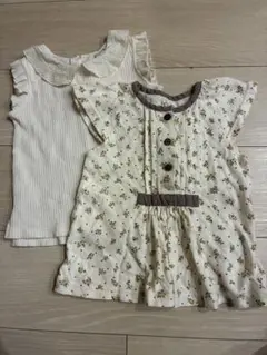 petit main ボーダー ノースリーブタンクトップ 白×ネイビー 100