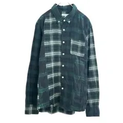 NK チェック柄シャツ ノーカラーシャツ L ネルシャツ チェックシャツ 古着