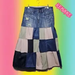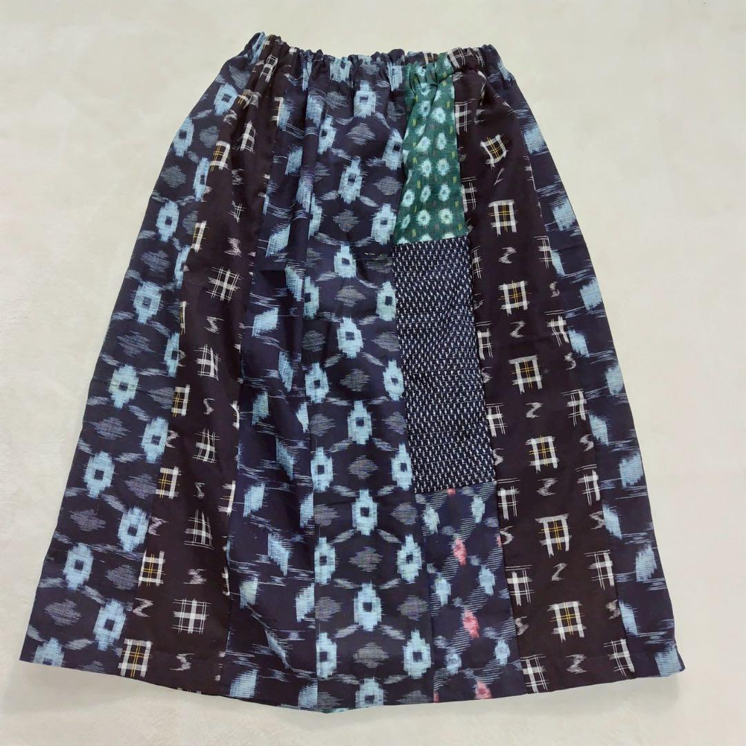 古布リメイク ハンドメイド 藍染 絣 パッチ はぎはぎスカート 2 大きめ