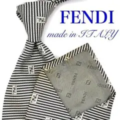 美品 FENDI フェンディ FF柄 シルク ジャガード ネクタイ グレー系