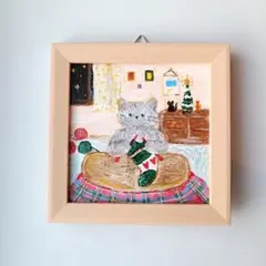 クリスマスの夜(ツリーと教会)☆キャンバス☆アクリル画☆薄型☆16×22㎝☆原画