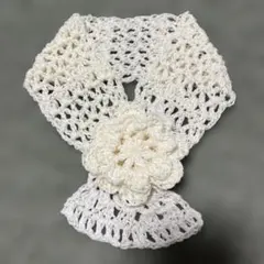 手編み ミニマフラー 鍵編み 紫系混色 ハマナカモヘア お花の通し口マフラー