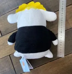 シナモロールのオレンジ色のぬいぐるみ、約25cmのサイズで、XIAOJUNのタグ付き。