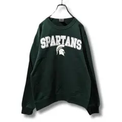 鮮やかなグリーンのトレーナー、THE PINESのプリント入り。