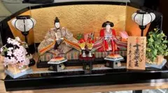 - 台座: 木製の台座に飾られた雛人形