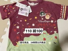 ヴァネロペのカラフルな星模様のブラウン襟が特徴の100cmサイズのTシャツ。