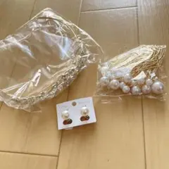 華やかなラインストーンとフェイクパールのブライダルアクセサリーセット。