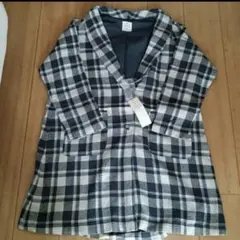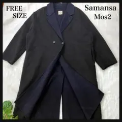 サマンサモスモス ノーカラーコート ウール混 チェック柄 秋冬 カジュアル