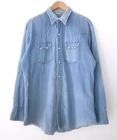 ヴィンテージ デニムシャツ レザー調 長袖 M