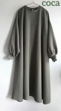 coca エンボスシリーズ長袖Aラインワンピース 黒 ブラック M 大きめサイズ