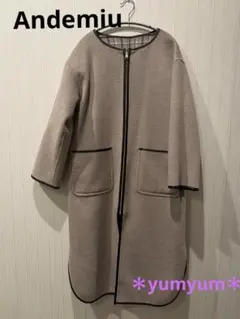Andemiuのノーカラーウールタッチコートです。