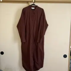 ニコアンド 綿 麻 七分袖 前開き シャツワンピース