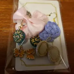 キラキラピンクと赤の水引を使用した玉結びピアス♡