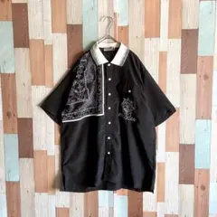シアーシャツ 刺繍ロゴ ヨット柄 半袖シャツ オフホワイト 生地感 古着 レトロ