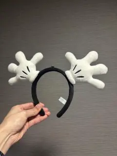 ミッキー耳とビジュー付きリボンのカチューシャ。