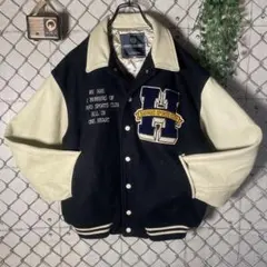 AMANATI レザーウールジャケット スタジャン ブラック キャノン刺繍 XL