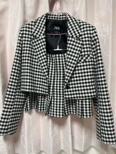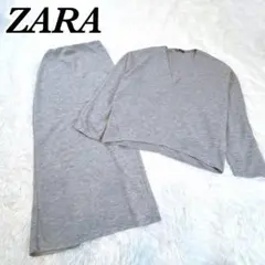 ZARA カットオフ仕上げリボン付きニットジャケット スカート