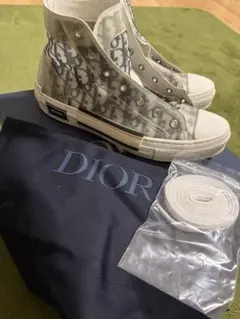 Diorのハイカットスニーカー、グレーとホワイトのユニークなデザイン。
