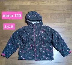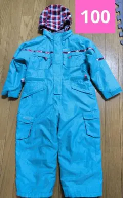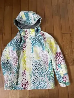 フード付きのストライプデザインのスキーウェア、サイズ130。