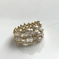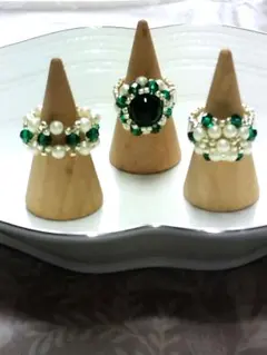 パープル系のビーズを使用したハンドメイドリング3個セット。