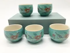 九谷焼 八重垣 夫婦湯呑み 蓋付き 青粒