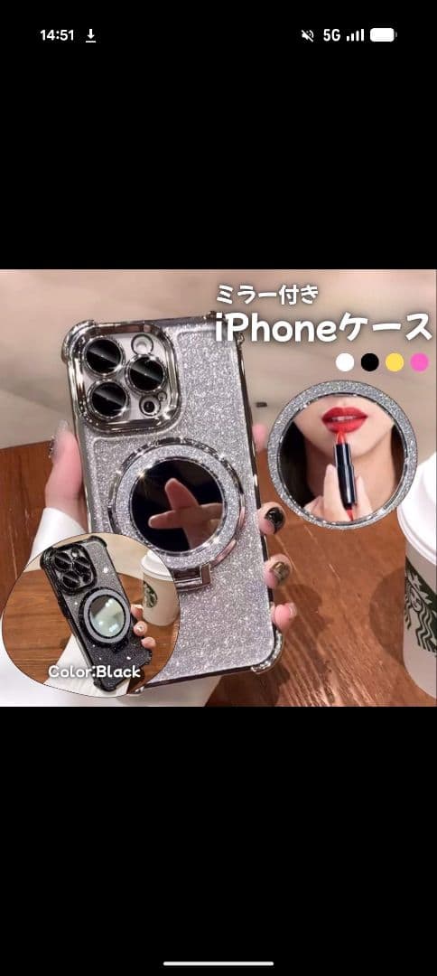 iPhone17Air マグセーフ ブラック 黒 スタンド付 ミラー キラキラ