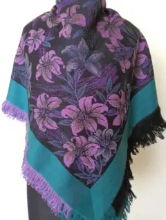 未使用 大判ストール スカーフ ペーズリー柄 レッド 絹30%