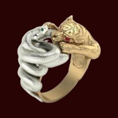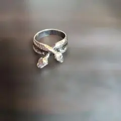 蛇のデザインが特徴のユニークなリング。青いストーンがアクセント。